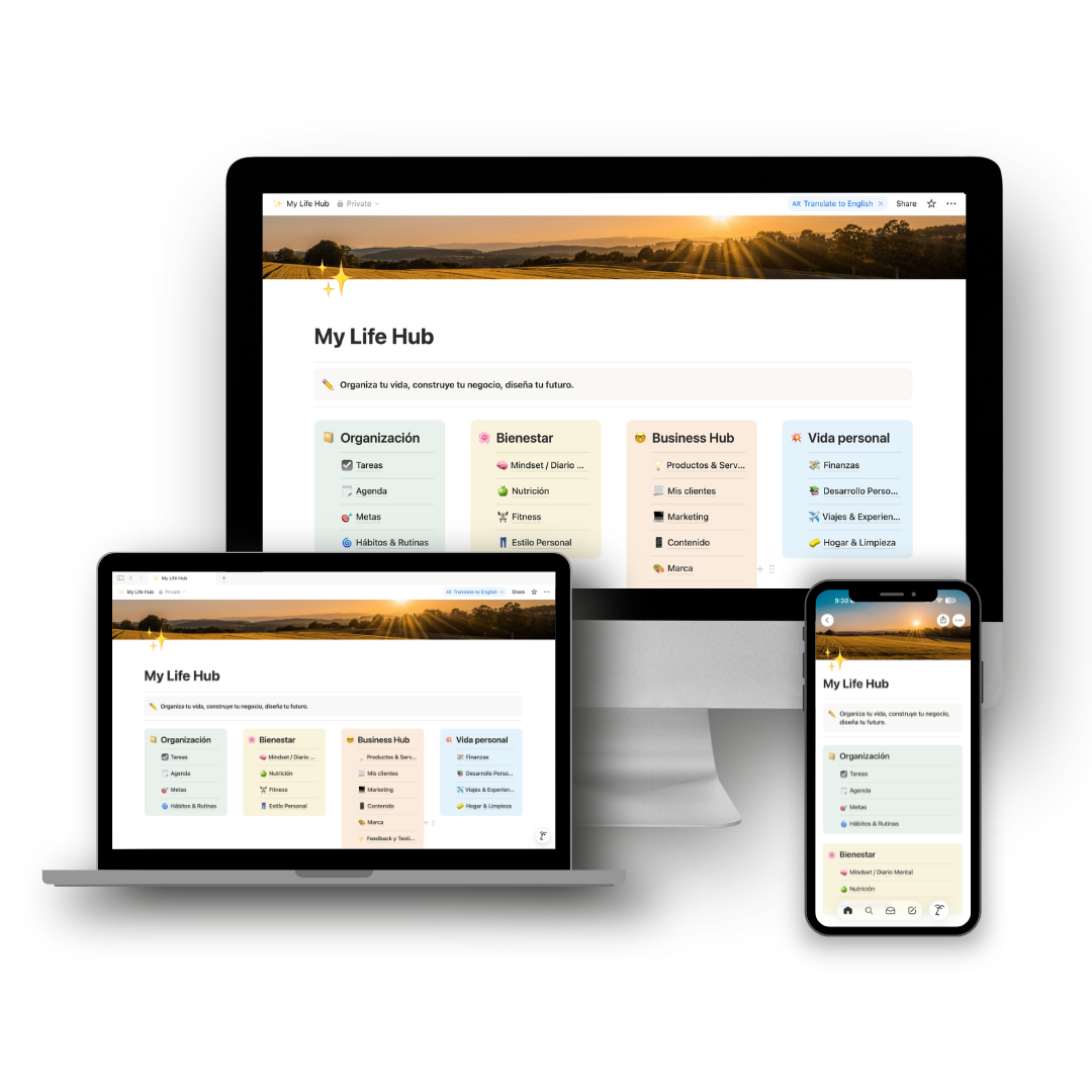 Sistema en Notion para organizar tareas, ideas, crecimiento personal y negocio.