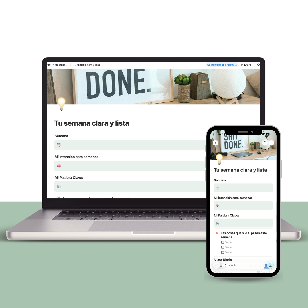 En menos de 10 minutos configuras tu semana, defines tus prioridades y sabes exactamente qué hacer cada día, sin ruido, sin caos.